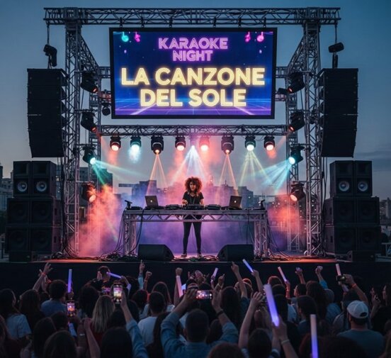 Sì, il servizio include impianto audio professionale, microfoni e luci, anche schermo led per karaoke