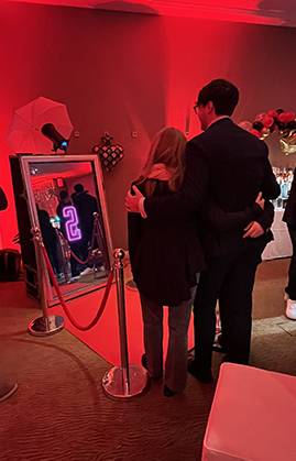 Durante una cena aziendale, il photo booth aggiunge un momento di divertimento senza disturbare l’eleganza dell’evento. L’allestimento discreto e raffinato lo rende perfetto anche per location prestigiose.